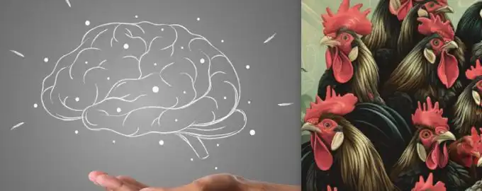 Pirmkārt, jums jāatceras, kā vista atšķiras no gaiļa. Atrodiet vistu starp gaiļiem laikā / kolāžā ar fotoattēliem pixabay.com un Moje Sarežģītas loģikas