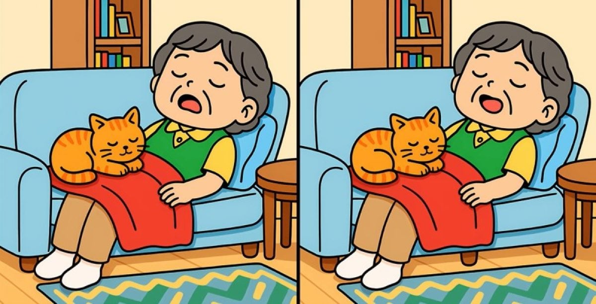 Vai esat gatavs pārbaudīt sevi? Šeit ir divas ilustrācijas: tajās attēlota sieviete un kaķis, kas guļ uz dīvāna. No pirmā acu uzmetiena ainas izskatās pilnīgi vienādas, taču starp tām ir paslēptas trīs nelielas atšķirības.