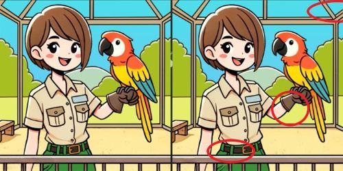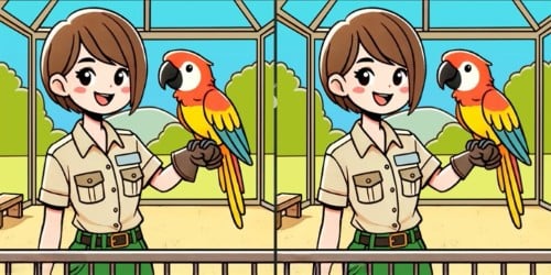Attēlos redzama meitene ar papagaili. No pirmā acu uzmetiena attēli šķiet vienādi, taču tajos ir paslēptas trīs atšķirības. Tavs uzdevums ir tos atklāt tikai 17 sekundēs.