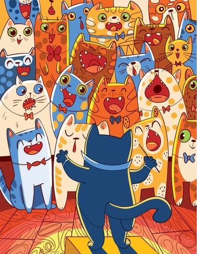 Puzles attēlā redzat kaķu grupu, kas dzied korī. Pelēkais kaķis priekšplānā ir kora vadītājs, un pārējie kaķi viņam seko. Kaķi gatavojas koru konkursam, un viņiem vajag visu iespējamo enerģiju. Kora diriģents kaķis savai grupai nopirka zivis. Diemžēl viens no mantkārīgajiem kaķiem apēda visas zivis, un palika tikai viena. Vai jūs varat atrast paslēpto zivi korī 12 sekunžu laikā?