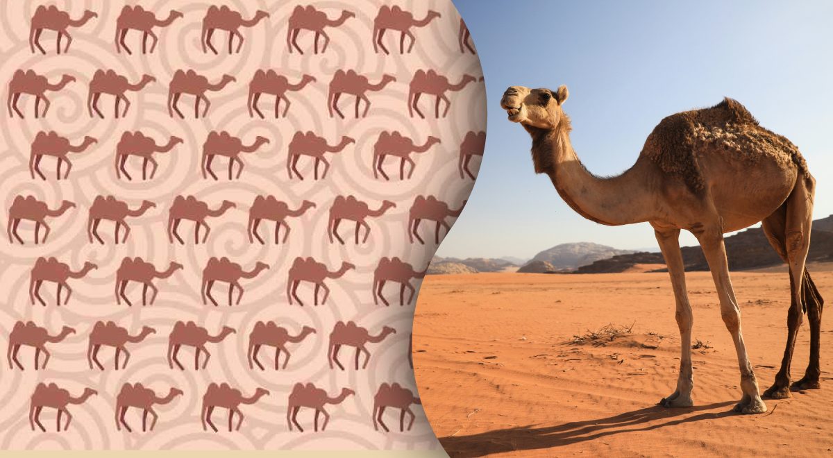 Attēlā redzam lielu skaitu kamieļu, kas soļo uz priekšu. No pirmā acu uzmetiena šķiet, ka tie visi ir vienādi, bet patiesībā tas tā nav. Uzmanīgi ieskatoties, kļūs skaidrs, ka viens no tiem tomēr atšķiras no pārējiem.