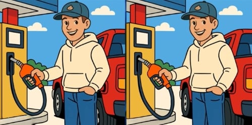 Uzmanīgi apskatiet divus attēlus, kuros redzams vīrietis, kurš piepilda automašīnu ar gāzi. Sākumā var šķist, ka bildes ir pilnīgi vienādas, taču patiesībā starp tām slēpjas trīs nelielas atšķirības.