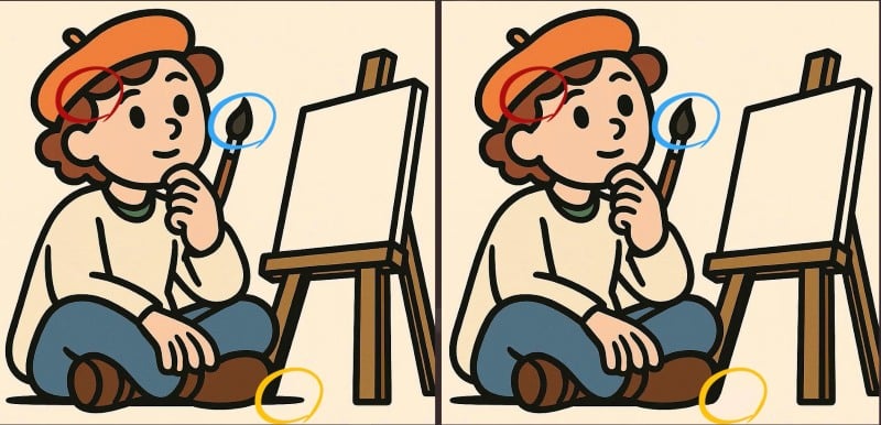 Vai esat gatavs pārbaudīt savas novērošanas spējas? Apskatiet divus zīmējumus, kuros redzams, kā mākslinieks sēž audekla priekšā. Sākumā var šķist, ka attēli ir pilnīgi identiski, taču starp tiem ir paslēptas trīs nelielas atšķirības.