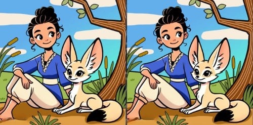 Šeit ir divi attēli ar meiteni ar lapsu. No pirmā acu uzmetiena tie var šķist pilnīgi vienādi, taču patiesībā starp tiem ir paslēptas trīs nelielas atšķirības.