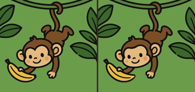 Šoreiz esam aicināti apskatīt divas bildes ar pērtiķi uz koka. No pirmā acu uzmetiena tie izskatās identiski, taču starp tiem ir trīs slēptas atšķirības. Tavs uzdevums ir tos atklāt tikai 23 sekundēs.