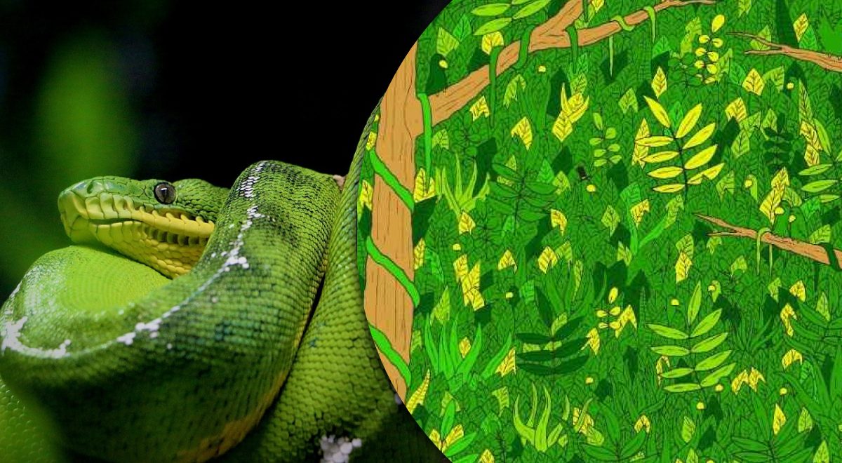 Attēlā jūs redzēsiet džungļus un tikai 1% ļoti vērīgu cilvēku spēs atrast čūsku.