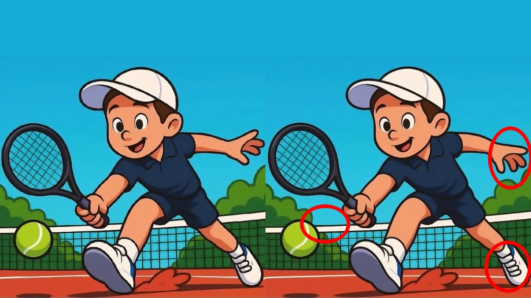 Šeit ir divi tenisa spēlētāja attēli. Tavs uzdevums ir atrast trīs atšķirības tikai 35 sekundēs.