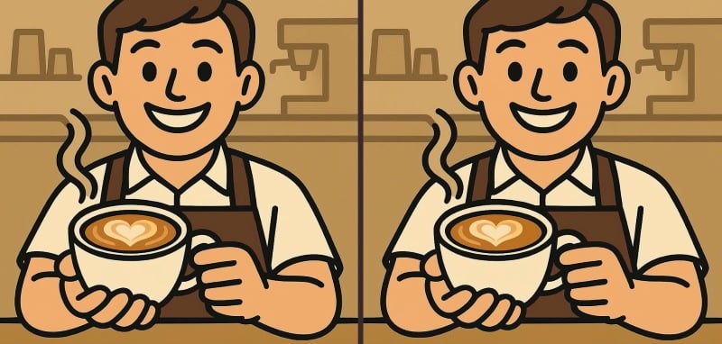 Vai esat gatavs pārbaudīt savas novērošanas spējas? Apskatiet divus baristas attēlus. Sākumā tie izskatās identiski, taču starp tiem ir trīs smalkas atšķirības. Vai varat tos pamanīt 45 sekundēs?