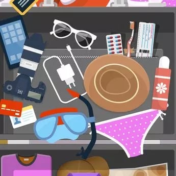 Neviens ceļojums nav pabeigts bez čemodāna iesaiņošanas. Zemāk redzamajā attēlā redzamas mantas no cilvēka, kurš rūpīgi gatavojās ceļojumam.