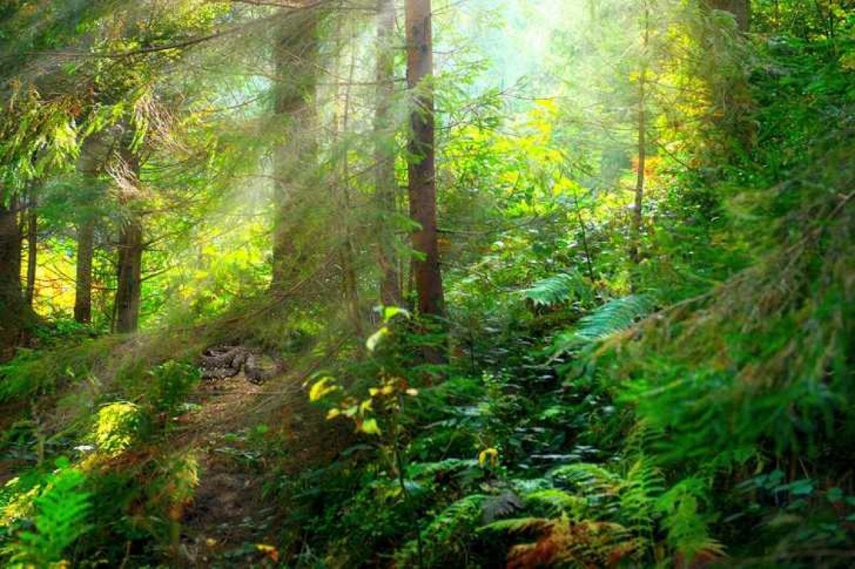 Attēlā redzams blīvi zaļš mežs. Kaut kur slēpjas čūska, kas mums jāatrod.