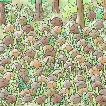 Arī čūska, kas kaut kur attēlā slēpjas, pēc formas ir ļoti līdzīga bruņurupučiem, tāpēc to ir vēl grūtāk atrast. Čūska saplūst ar bruņurupučiem.