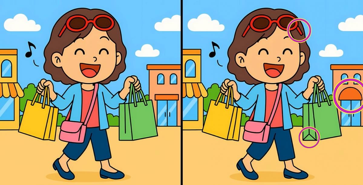 Vai esat gatavs pārbaudīt savu vērību? Šeit ir divi meitenes attēli ar iepirkšanos. Tie izskatās identiski, taču tā ir tikai optiska ilūzija – starp tām slēpjas trīs atšķirības.