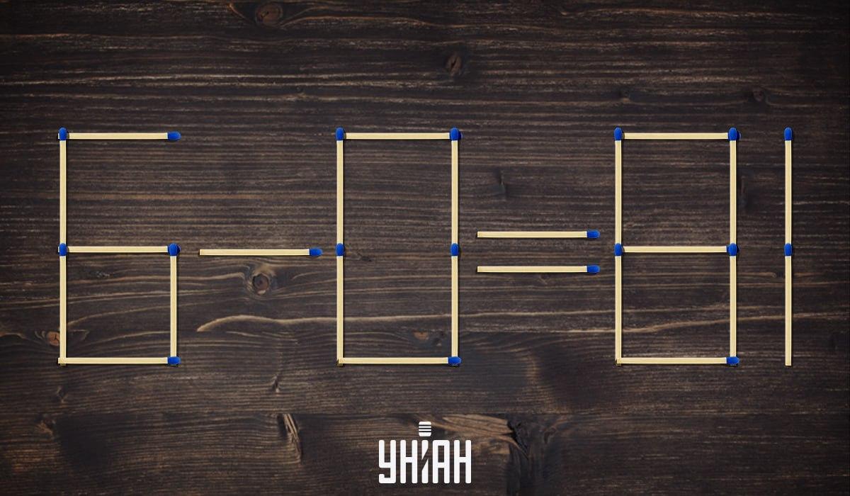 Attēlā redzams aritmētiskais piemērs 6-0=81, kas izkārtots ar sērkociņiem, kas acīmredzami ir nepatiess. Varat pārkārtot tikai 2 atbilstības, lai problēma izskatītos pareizi. Lai to izdarītu, jums ir jādomā ārpus rāmjiem un jābūt labai matemātiskajai intuīcijai.