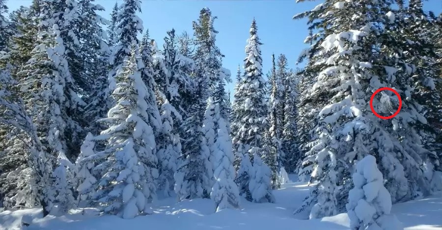 Ja nevarat atrast pūci, sniegsim nelielu mājienu – pievērsiet uzmanību koka vidusdaļai, kas atrodas attēla labajā pusē. Vai jūs tur neko nepamanāt?