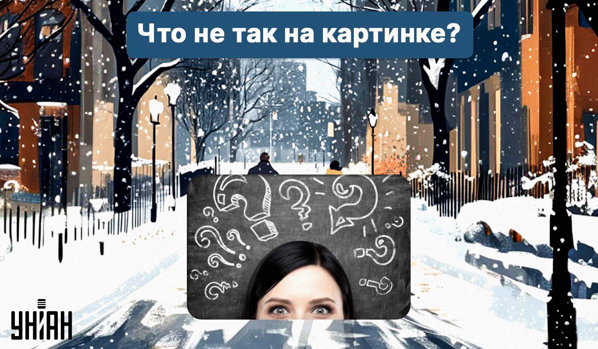 Tātad, zemāk redzēsiet sniegotas pilsētas attēlu, pa kuru pastaigājas pāris ar mazu bērnu ratos. Apkārt viss ir klāts ar sniegu, bet šajā bildē kaut kas nav kārtībā.