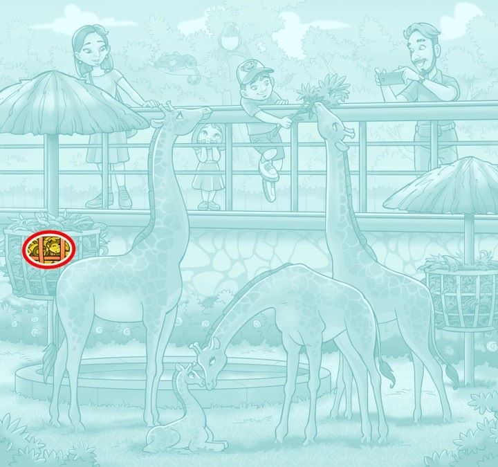 Pēc JagranDžoša teiktā, zīmējumā ir attēlots zoodārzs. Vīrietis klikšķina žirafes attēlus. Sieviete un bērni ir pārsteigti, ieraugot dzīvniekus. Zēns baro žirafi ar augiem. Šajā bildē arī kaut kur gudri paslēpies mērkaķis. Mēģiniet pēc iespējas ātrāk atrast pērtiķi, jo jums ir tikai 9 sekundes, lai izpildītu šo uzdevumu.