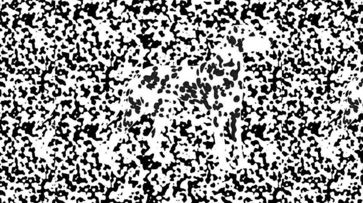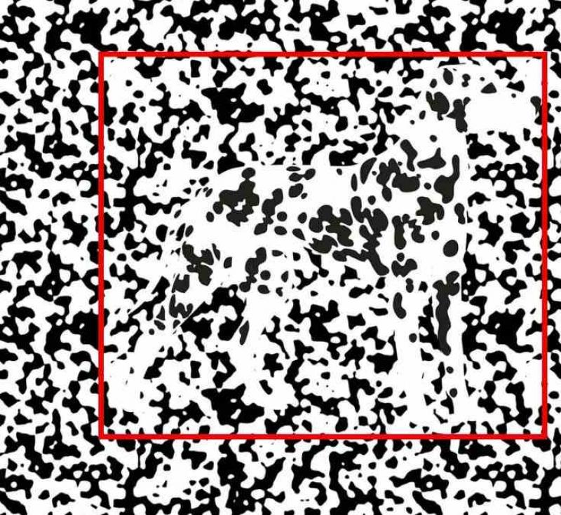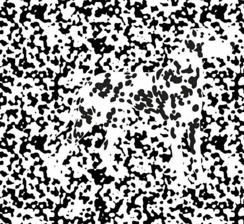 Mēģiniet atrisināt ļoti mulsinošu optisko ilūziju – attēlā ar melnbaltiem punktiem jums jāmēģina atrast paslēptu suni.